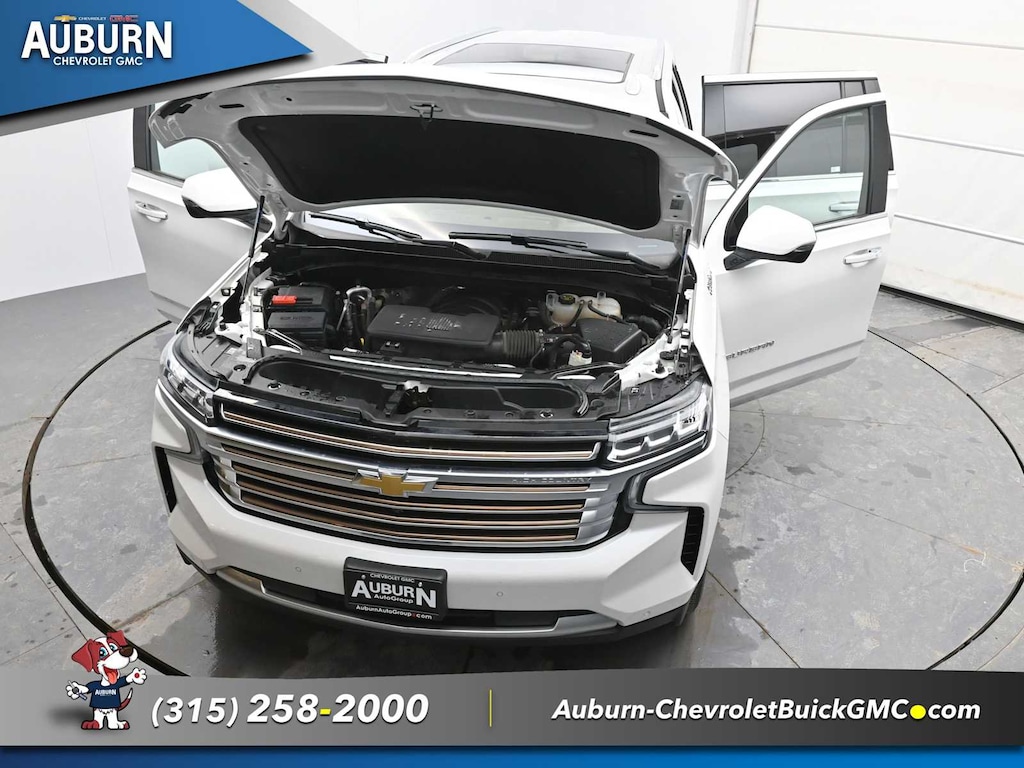 ADVANCED TECHNOLOGY PACKAGE includes (UKL) Super Cruise, (UKZ) Enhanced Automatic Parking Assist and (UVZ) Reverse Automatic Braking, REAR SEAT MEDIA SYSTEM includes dual rear seat-mounted 12.6" diagonal color-touch LCD HD screens, Wi-Fi wireless projection capability, two Bluetooth® headphones with 2 HDMI ports on the back of the center console, ASSIST STEPS, POWER-RETRACTABLE with perimeter lighting, SUNROOF, POWER PANORAMIC, DUAL-PANE, TILT-SLIDING with express-open and close and power sunshade, LPO, ALL-WEATHER FLOOR LINERS, 1ST, 2ND AND 3RD ROWS (dealer-installed), AUDIO SYSTEM, CHEVROLET INFOTAINMENT 3 PREMIUM SYSTEM WITH GOOGLE BUILT-IN 10.2" diagonal HD color touchscreen, includes multi-touch display, AM/FM stereo, Bluetooth® streaming audio for music and most phones; featuring wireless Android Auto® and Apple CarPlay® capability for compatible phones, advanced voice recognition, in-vehicle apps, personalized profiles for infotainment and vehicle settings.) (STD), ENGINE, 6.2L ECOTEC3 V8 with Dynamic Fuel Management, Direct Injection and Variable Valve Timing, includes aluminum block construction (420 hp [313 kW] @ 5600 rpm, 460 lb-ft of torque [624 Nm] @ 4100 rpm) (STD), TRANSMISSION, 10-SPEED AUTOMATIC electronically controlled with overdrive, includes Traction Select System including tow/haul (Standard with (L87) 6.2L EcoTec3 V8 engine only.) (STD), ADVANCED TRAILERING PACKAGE includes (PZ8) Hitch Guidance with Hitch View, (JL1) trailer brake controller and (UET) Smart Trailer Integration Indicator Also includes (UKV) Extended Side Blind Zone Alert.).