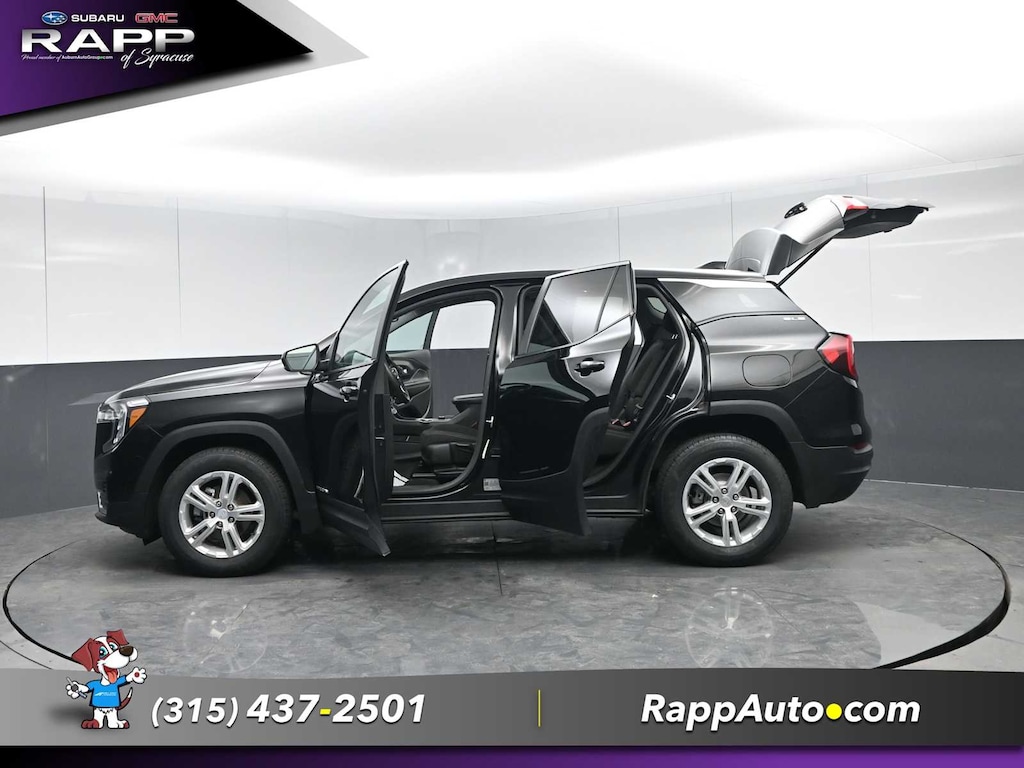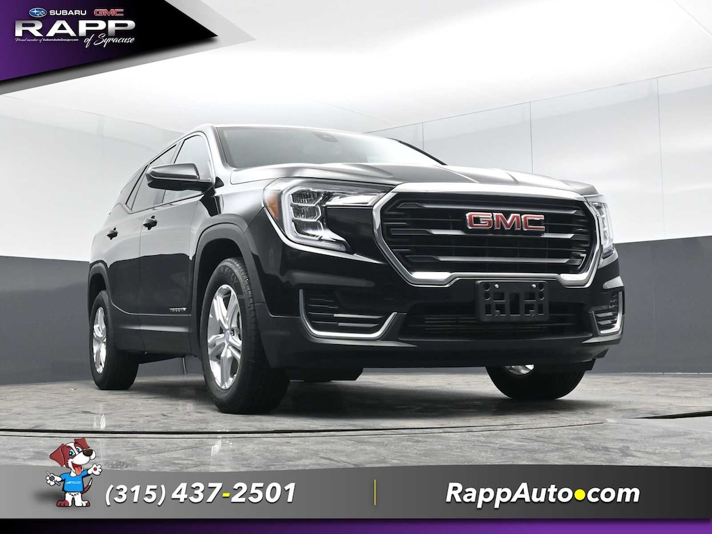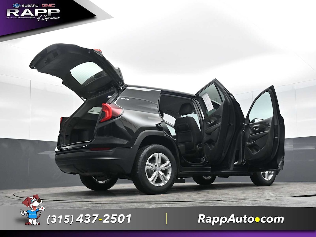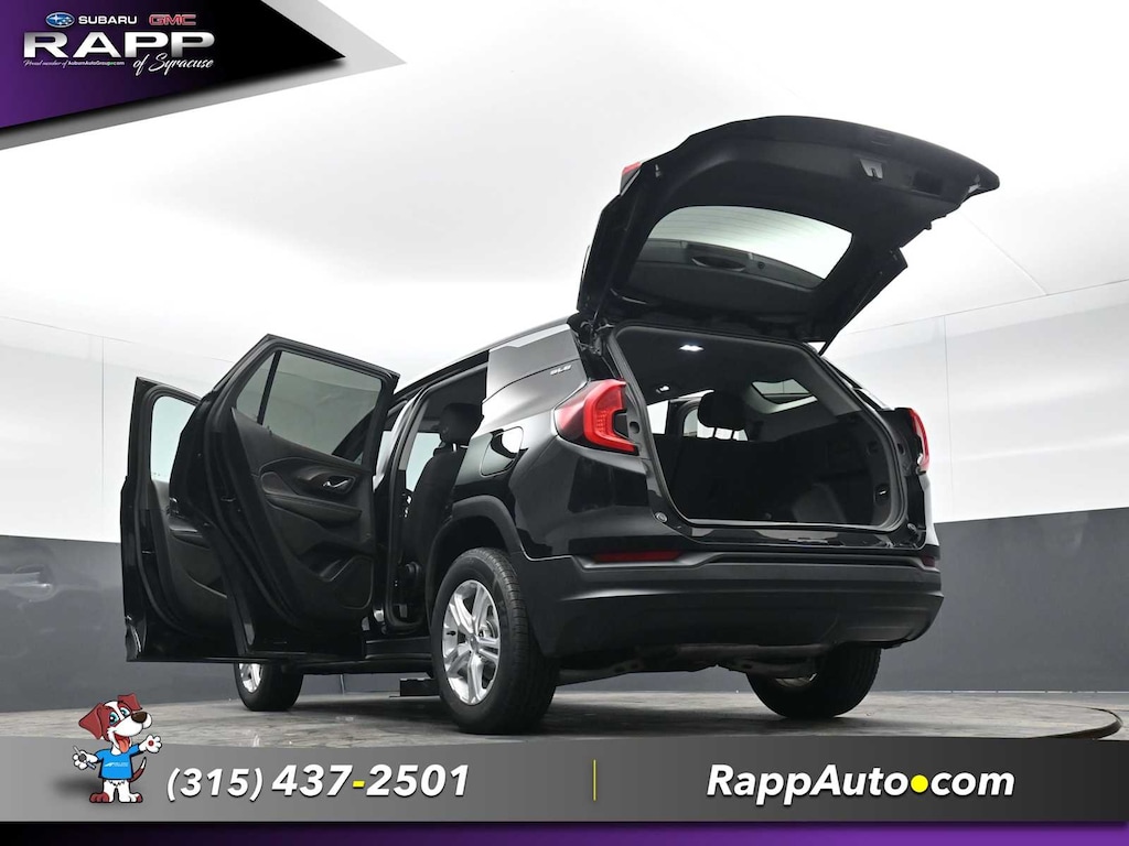 All Wheel Drive, Back-Up Camera, Satellite Radio, iPod/MP3 Input, Aluminum Wheels, Keyless Start, Lane Keeping Assist. MP3 Player, Keyless Entry, Privacy Glass, Steering Wheel Controls. GMC SLE with Ebony Twilight Metallic exterior and Jet Black interior features a 4 Cylinder Engine with 170 HP at 5600 RPM*.