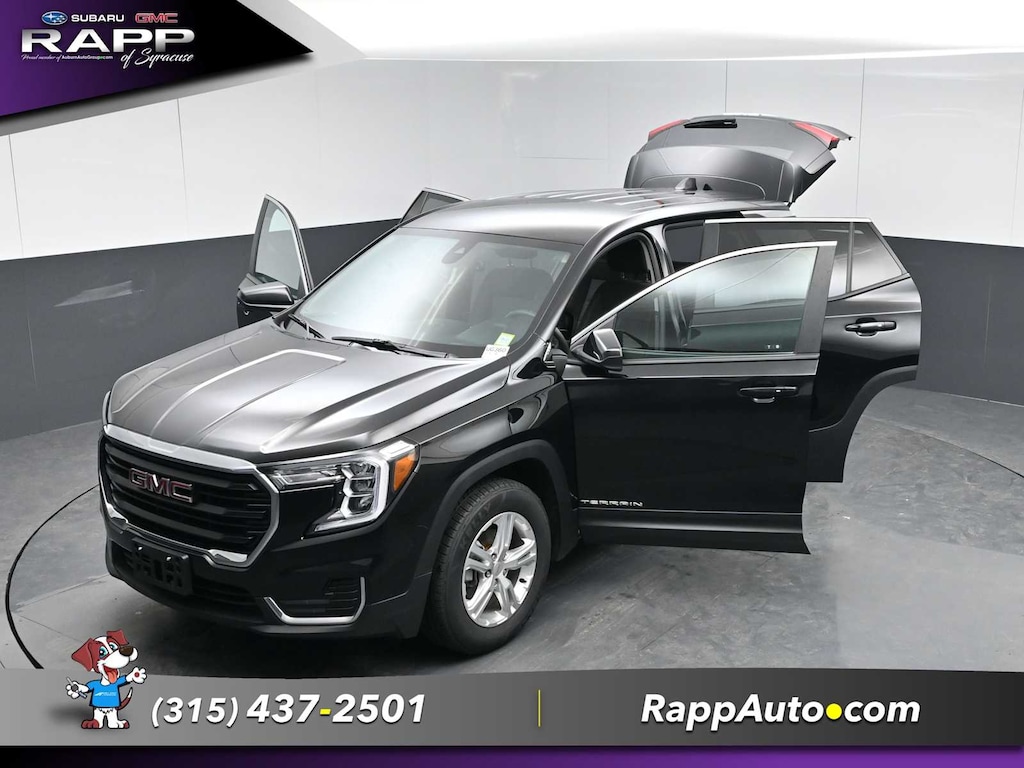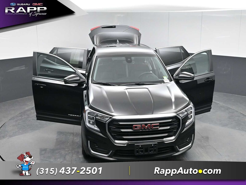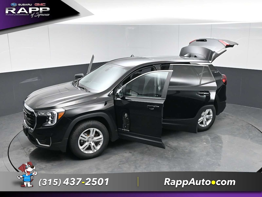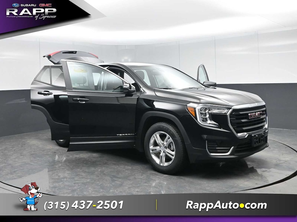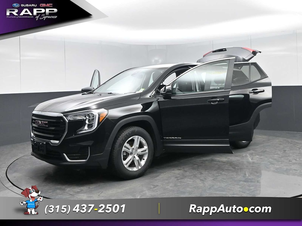 All Wheel Drive, Back-Up Camera, Satellite Radio, iPod/MP3 Input, Aluminum Wheels, Keyless Start, Lane Keeping Assist. MP3 Player, Keyless Entry, Privacy Glass, Steering Wheel Controls. GMC SLE with Ebony Twilight Metallic exterior and Jet Black interior features a 4 Cylinder Engine with 170 HP at 5600 RPM*.