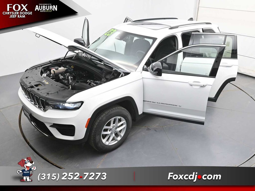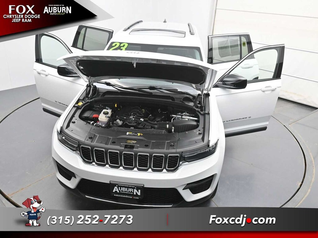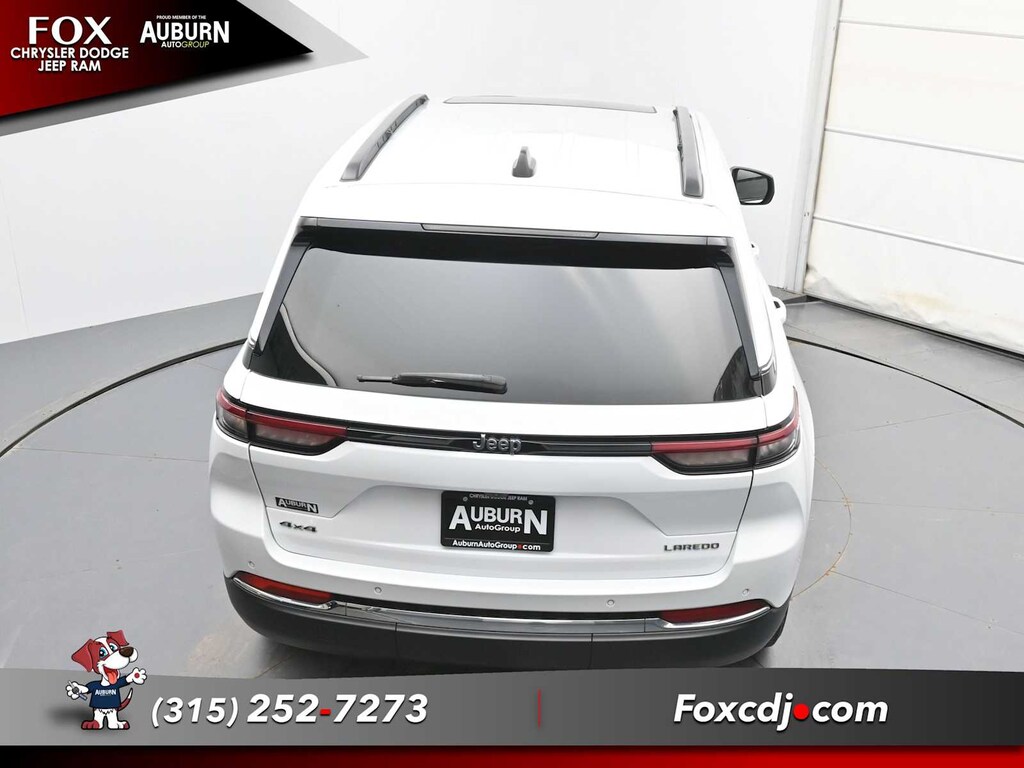 Blind Spot Monitor, Cross-Traffic Alert, Lane Keeping Assist, Adaptive Cruise Control, WiFi Hotspot Jeep Laredo with Bright White Clearcoat exterior and Global Black interior features a V6 Cylinder Engine with 293 HP at 6400 RPM*.