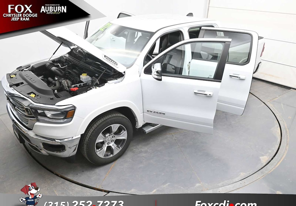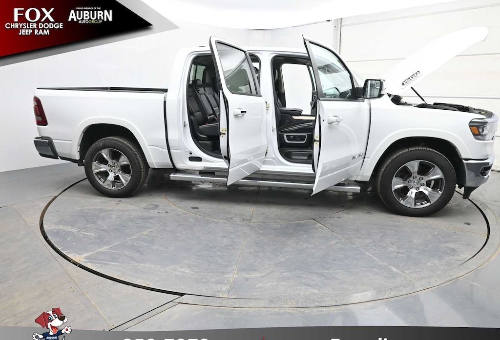 ENGINE: 5.7L V8 HEMI MDS VVT Active Noise Control System, Heavy Duty Engine Cooling, Passive Tuned Mass Damper, GVWR: 7,100 lbs, Dual Rear Exhaust w/Bright Tips, HEMI Badge, 220 Amp Alternator, LARAMIE LEVEL 1 EQUIPMENT GROUP Remote Tailgate Release, Rear Underseat Compartment Storage, Auto High Beam Headlamp Control, Blind Spot & Cross Path Detection, Rain Sensitive Windshield Wipers, ParkSense Front/Rear Park Assist w/Stop, Foam Bottle Insert (Door Trim Panel), Rear 60/40 Folding Split Recline Seat, WHEELS: 20 X 9 PREMIUM PAINT/POLISHED Tires: 275/55R20 OWL All Season, BLACK, LEATHER TRIMMED BUCKET SEATS Bucket Seats, Full Length Upgraded Floor Console, TRANSMISSION: 8-SPEED AUTOMATIC (8HP75).